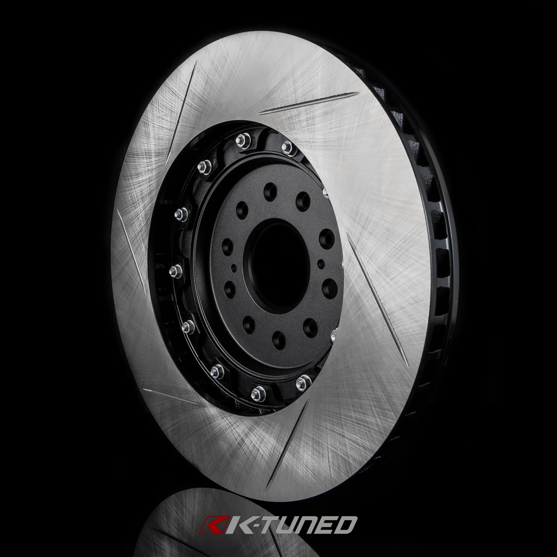 Our K-tuned replacement rotor is designed for direct fitment with no modifications required. Our rotors weighs in 7.5 lbs lighter than the original OEM rotors. The rotor and center bell have a 2 piece mount system, which utilizes 12 bolts.
