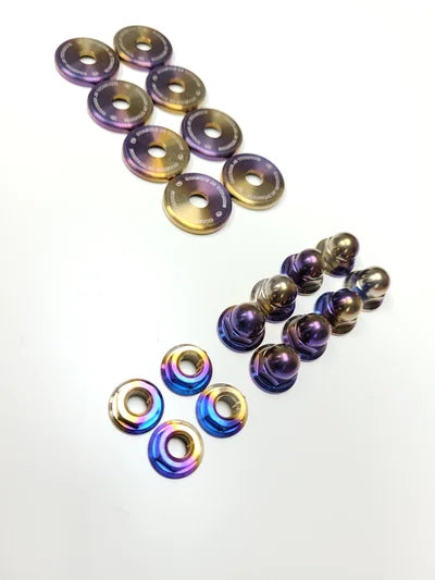 Our titanium valve cover washer kit comes with the correct titanium nuts to give you that finished look that your bay is missing.